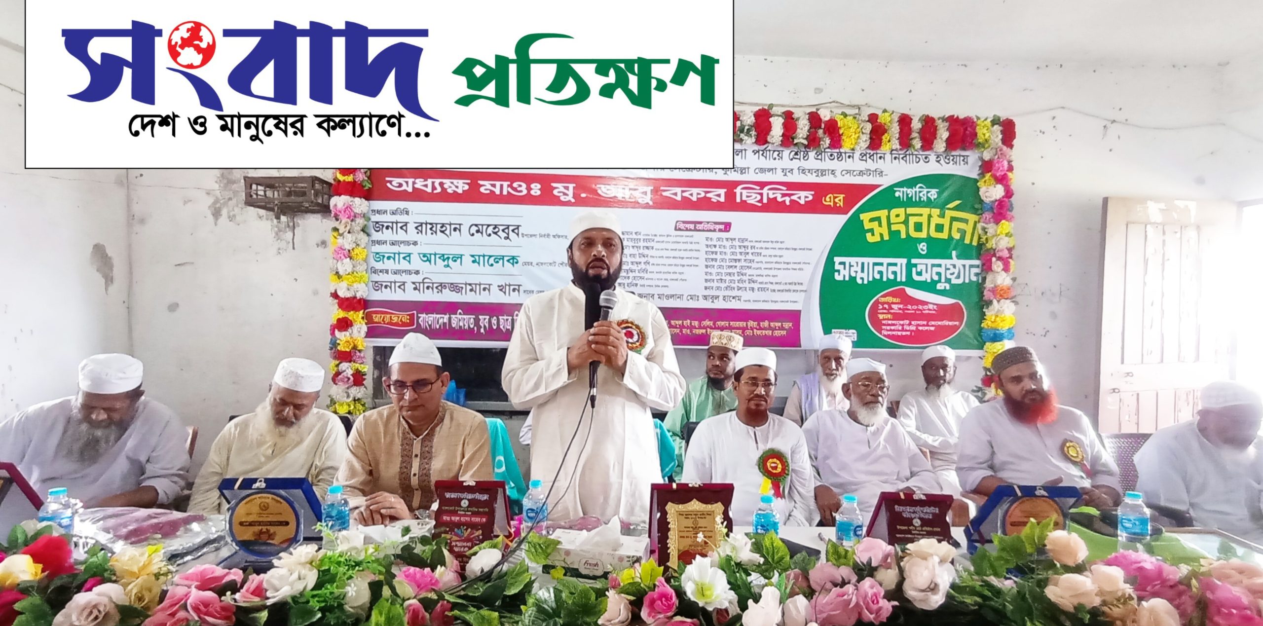 নাঙ্গলকোটে শ্রেষ্ঠ প্রতিষ্ঠান প্রধান আবু বকর ছিদ্দিককে নাগরিক সংবর্ধনা